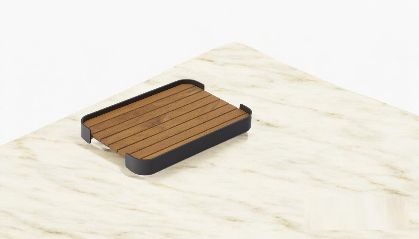 Nouveaux plateaux dans un mélange de matériaux aluminium et teck.