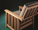 Collection MISSION. Bel exemple du style « Arts & Crafts » de la fin du XIXe siècle, le fauteuil Mission a un dossier réglable à trois positions, est magnifiquement proportionné et extrêmement confortable. Le pouf est disponible en option pour plus de confort lors de la détente.
