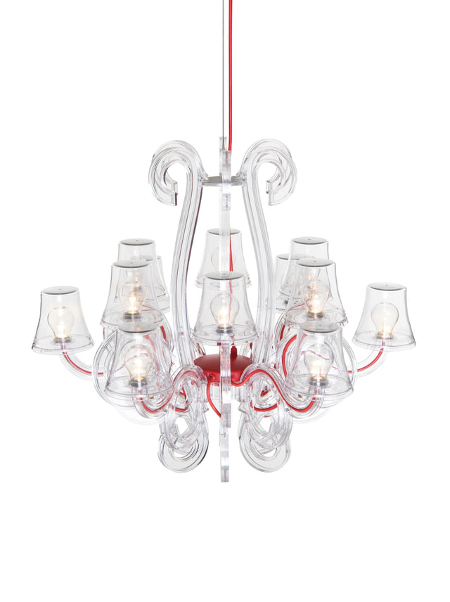 A l'intérieur, il offre un éclairage blanc chaud qui donne aux pièces un aspect élégant. Le baroque se combine parfaitement au design moderne. Choisissez l'une des 4 couleurs ou le modèle transparent avec son câblage rouge effronté.