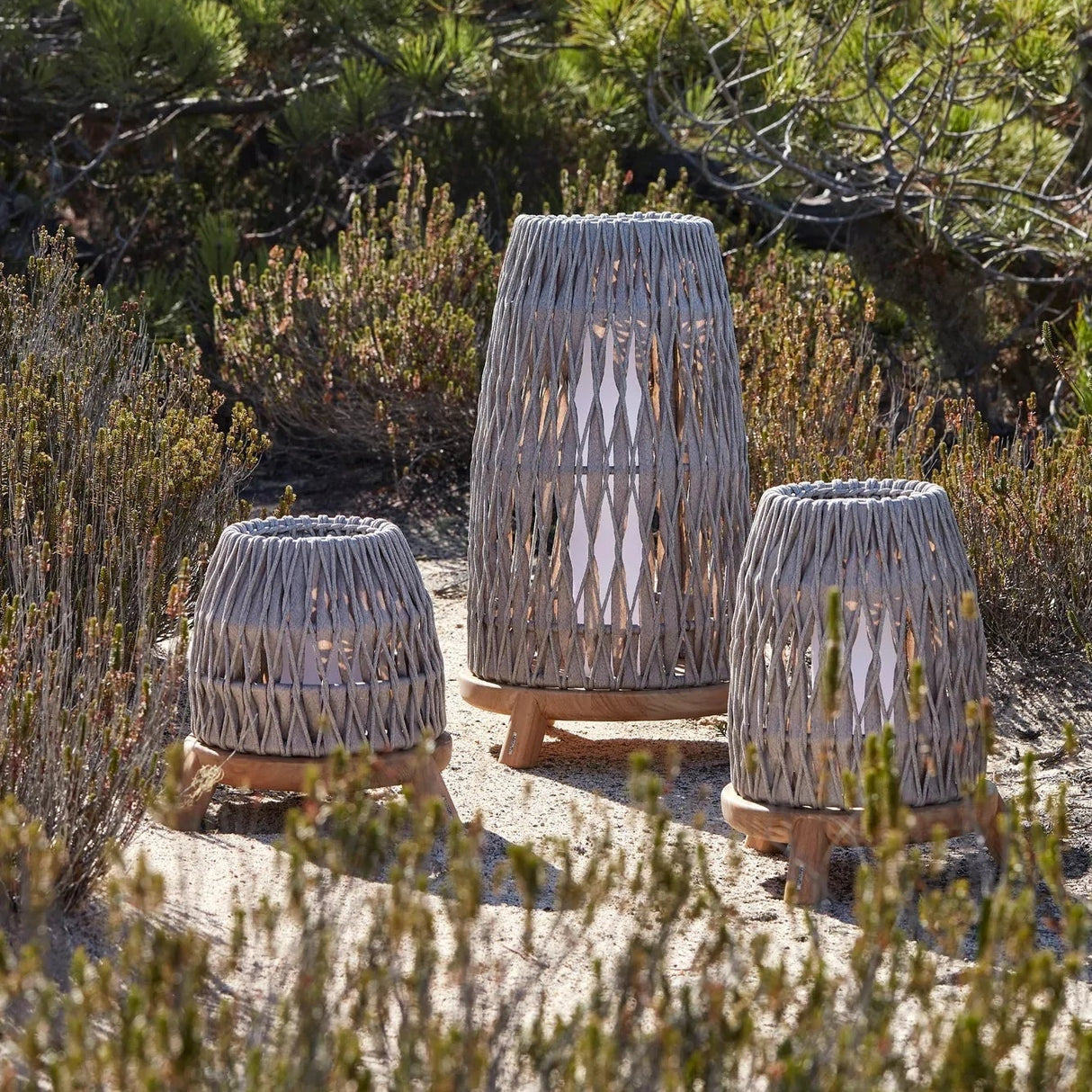 L'abat-jour tressé de forme organique est entouré d’une base en bois sculpté. En utilisant non pas un, mais deux matériaux, le designer a développé une approche à la fois unique et moderne de techniques de tissage traditionnelles pour concevoir des produits esthétiques qui sauront vous séduire pour illuminer vos soirées d'été.
