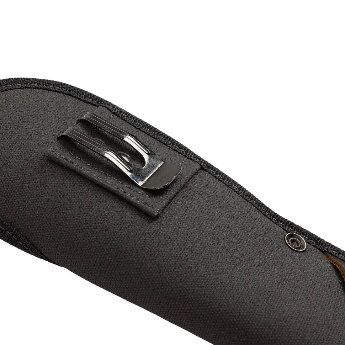 Le bouclier ultime pour l'outil ultime, la gaine allie utilité et design. Fabriqué en polyester 900D avec une doublure intérieure, il résiste à une utilisation réelle tout en protégeant la lame de l'émoussement. Le clip de ceinture en acier inoxydable facilite le transport et l'accessibilité, tandis que la solide sangle de poignée empêche la lame de glisser ou de bouger. L'extrémité ouverte permet un nettoyage facile et empêche l'accumulation de saleté, préservant ainsi la lame pendant des années d'utilisation continue. Accentué de cuir pleine fleur et de cuivre pour compléter le reste de notre collection Woodsman.