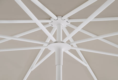 Collection de parasols à mât central en aluminium de Glatz.