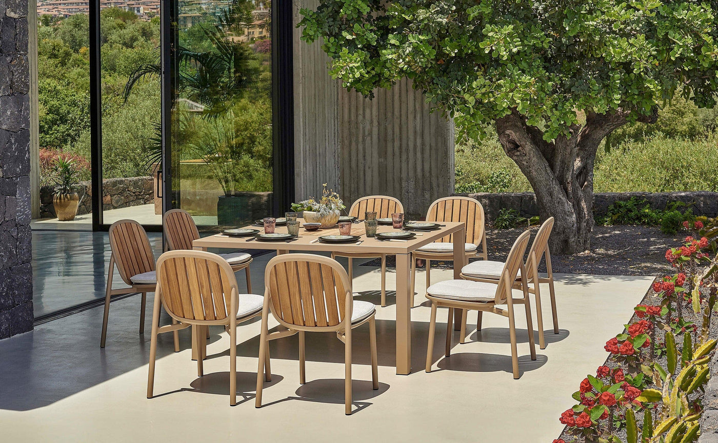Quadro, est la table carrée 8 places en acier, dont les dimensions généreuses ont été spécialement conçues pour partager des moments conviviaux en tout confort. Le design est caractérisé par un insert central amovible et remplaçable, disponible en tôle perforée, en teck FSC et en grès : un accessoire personnalisable en fonction du choix du style et des chaises dining à associer.