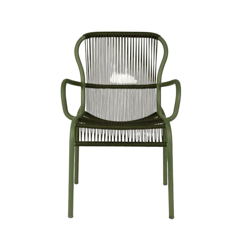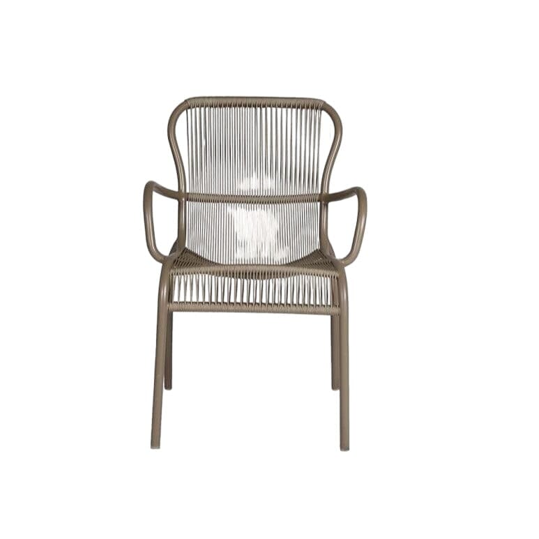 Der Loop-Esszimmerstuhl ist leicht und stapelbar und in den Farben Schwarzfaser oder Taupe, Dünenweiß, Moos, Terrakotta und Indigo erhältlich.