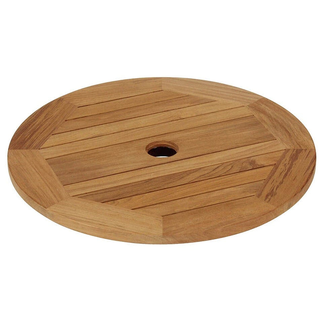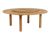 DRUMMOND-Kollektion. Große runde Esstische aus Teakholz mit beachtlichen Ausmaßen für bis zu acht Personen. Diese Tische nehmen unsere größeren Sonnenschirme auf und ein Lazy Susan ist als Option für sie erhältlich.