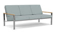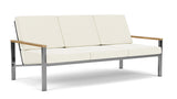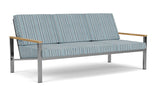 Barlow Tyrie Equinox Occasional 3-Sitzer-Sofa aus gebürstetem Edelstahl mit Kissen.