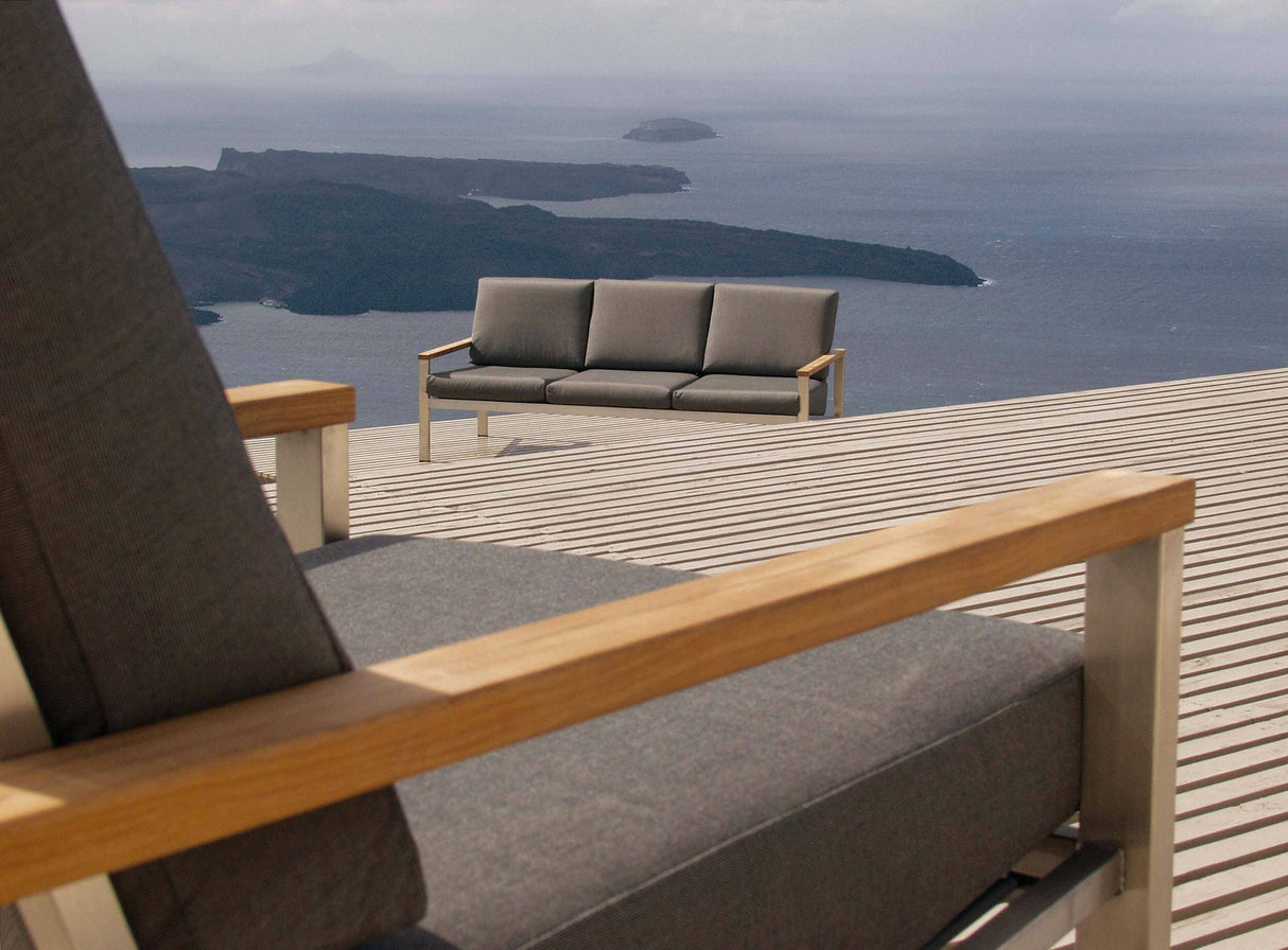 EQUINOX Kollektion. Diese Produkte umfassen tiefe Sitzmöbel, Couchtische und Chaiselongues, die das breite Angebot an Equinox Dining und Equinox High Dining Stühlen und Tischen ergänzen. Zwei- und Dreisitzersofas sind in unserem Equinox Deep Seating-Programm mit passendem Sessel und Sitzsack erhältlich. Hergestellt aus Edelstahl 316 in Marinequalität mit Armen aus massivem Teakholz.