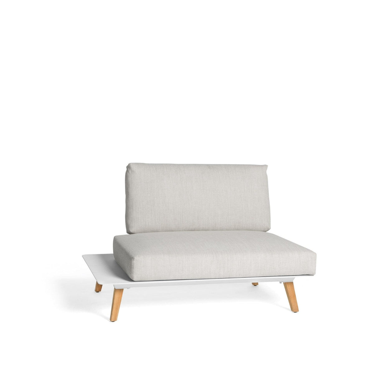 Kollektion. Ultimative Flexibilität. Als die am stärksten modularisierte Kollektion bietet Link unendliche Möglichkeiten. Mit abnehmbaren Rückenlehnen und einer leichten Struktur können die Sitze und Tische umgedreht werden, um Ihrem eigenen einzigartigen Design zu entsprechen. Die weichen, abgerundeten Kissen, der gedrehte Leinenlaminatstoff und die eleganten Teakholzfüße zeugen von der bemerkenswerten Detailgenauigkeit der Kollektion.