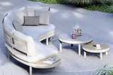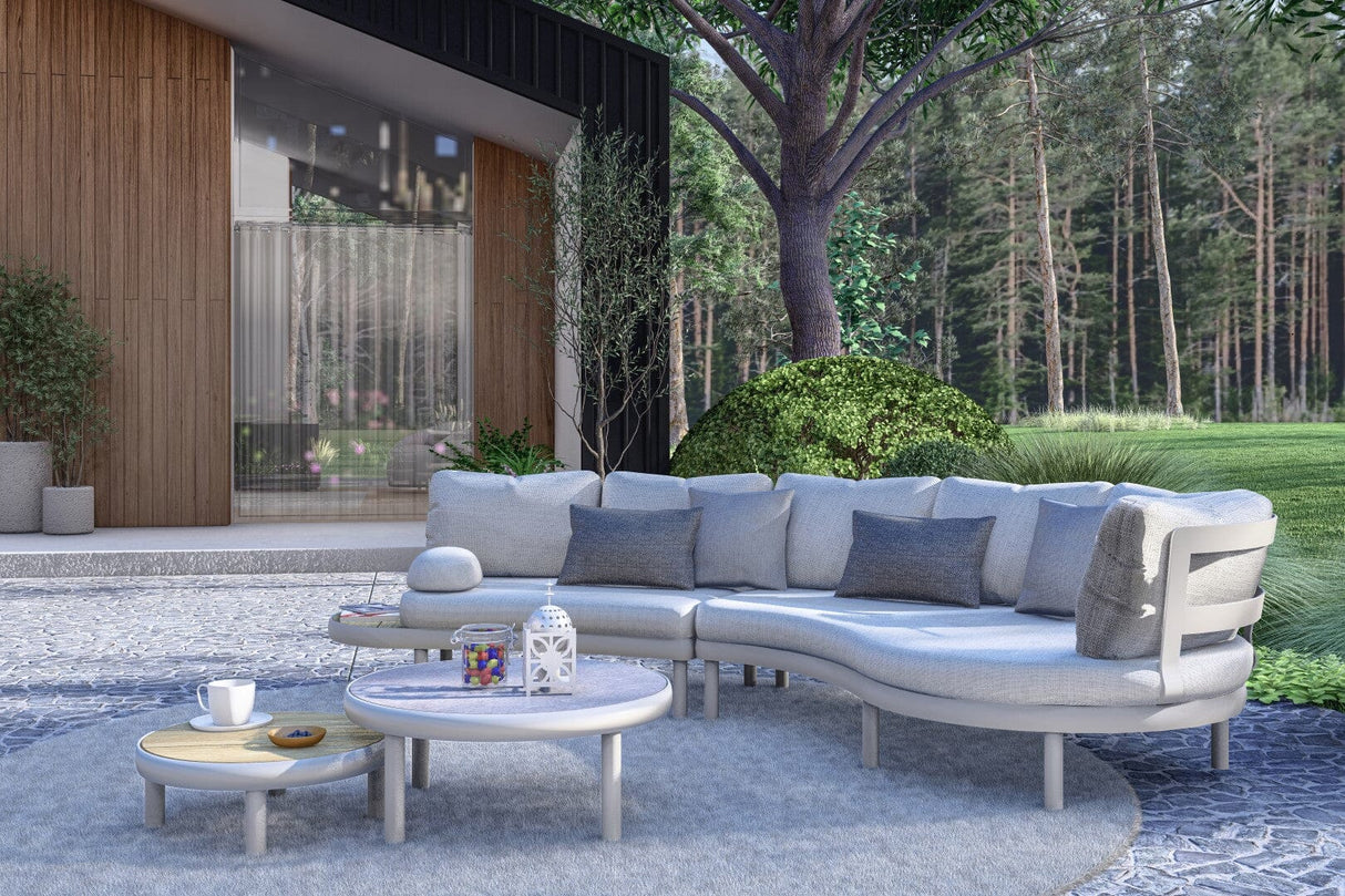 Material: pulverbeschichtetes Aluminium Taupe /Wasserdichte Kissen Sunproof Panna Cotta.