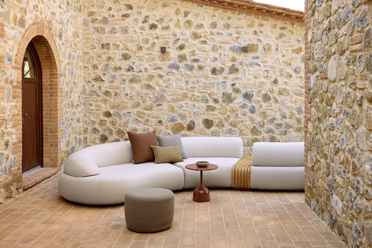 Das rechte Mellow Sofa-Modul mit langer Rückenlehne von Cane-line Design bietet eine anspruchsvolle und dennoch entspannte Atmosphäre für jeden Entspannungsbereich im Freien. Die verlängerte Rückenlehne bietet zusätzlichen Halt, während die geschwungenen Linien und die niedrige Sitzfläche eine einladende und entspannte Atmosphäre schaffen. Dieses Modul verfügt über einen soliden Aluminiumrahmen unter den weichen Schaumstoffkissen und ist vollständig mit hochwertigen, wetterbeständigen Stoffen gepolstert, was es für den Einsatz im Freien strapazierfähig macht. Das passende Modul lässt sich mit weiteren Mellow-Teilen kombinieren, sodass Sie Ihre Wohnzimmerkonfiguration entsprechend Ihrem Platzangebot und Bedarf erweitern und individuell gestalten können. Der Schaumstoff des Mellow-Sofamoduls ist mit dem QuickDry- und Airflow-System ausgestattet, das für schnell trocknenden Komfort sorgt und es zu einer stilvollen und praktischen Wahl für jeden modularen Aufbau macht.
