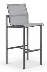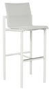 Hocker Bastingage, Duratek und weiß meliertes Ateja-Gewebe. Hoher Hocker, ideal für das Essen im Stehen. Die Fußstützenstange ist durch eine Edelstahlplatte geschützt.