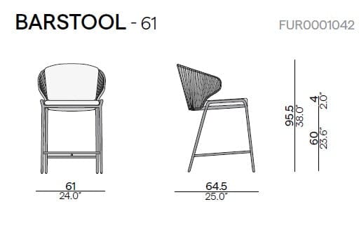 Manutti Radoc Radius Barstool 61, Kissen nicht inbegriffen
