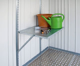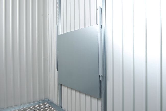 Der platzsparende Klapptisch hängt an 2 Regalhalterungen. So haben Sie schnell eine stabile Arbeitsfläche. Maximale Belastung 30 kg.