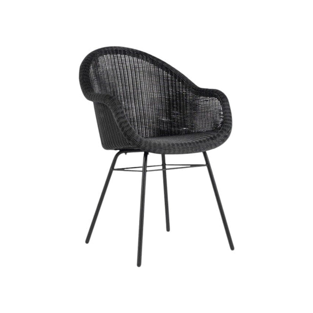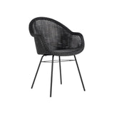 Ein fein geflochtener Stuhl mit einem Untergestell aus warmem Teakholz oder glattem Stahl für einen modernen Materialmix. Verfügbare Farben: Schwarz, Mokka, Old Lace.