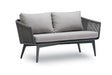 Die Verwendung von hochwertigen Materialien und deren professionelle Verarbeitung machen die Serie zu etwas Besonderem. Das wetterfeste Material der Seile ist für den Einsatz im Freien konzipiert und trotzt allen Witterungsbedingungen. Das Möbelstück ist leicht zu reinigen und bedarf keiner besonderen Pflege. Die Kissen aus 100% Polyestergewebe sind wasserabweisend und können für die schlechte Jahreszeit oder schlechte Regentage abgenommen werden.