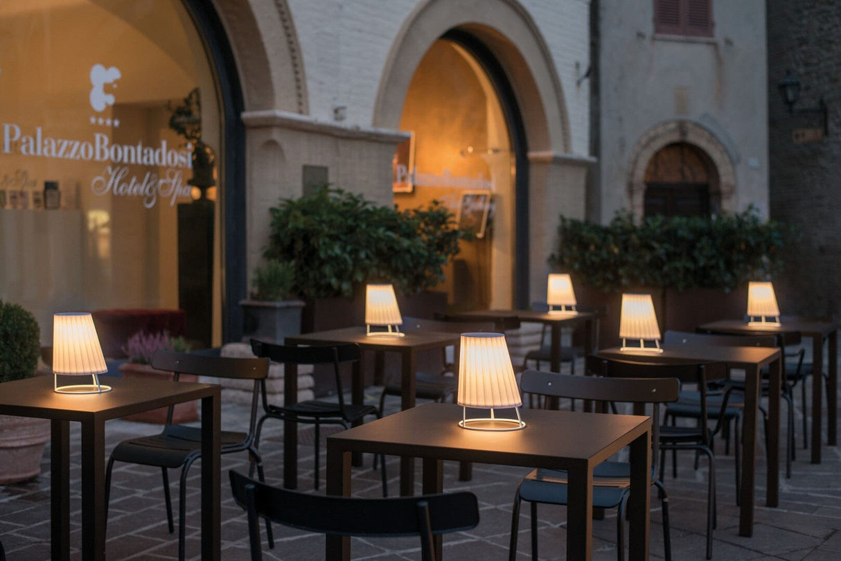 CONE-Kollektion. Formen der „Innenraum“-Erinnerung, die in Außenbereiche migrieren: Die Lampenkollektion Cone ist von den eleganten und Vintage-Formen der 50er Jahre inspiriert und wird dank der sorgfältigen Verwendung von Materialien und der Wahl großzügiger Formen modernisiert.
