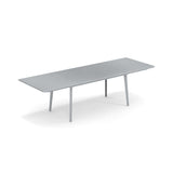 PLUS4-Sammlung. Die Plus4-Kollektion umfasst zwei ausziehbare Tische. Die neuen Balcony- und Imperial Plus4-Tische. Die Platte besteht aus pressgebogenem Stahl, dessen sorgfältige Verarbeitung für eine bessere ästhetische Wirkung sorgt. Die Schienen zur Verlängerung der Tischplatte wurden von EMU entworfen. Der „Butterfly“-Mechanismus der Innenverlängerung sorgt für ein extrem einfaches Öffnen. Im Vergleich zu einem herkömmlichen ausziehbaren Tisch können Sie mit der 110-cm-Verlängerung vier statt zwei Gedecke hinzufügen, was die Einsatzmöglichkeiten dieses Produkts erhöht. Darüber hinaus ist die Tischverlängerung so konzipiert, dass alle Personen sitzen können, ohne durch ihre Füße behindert zu werden.