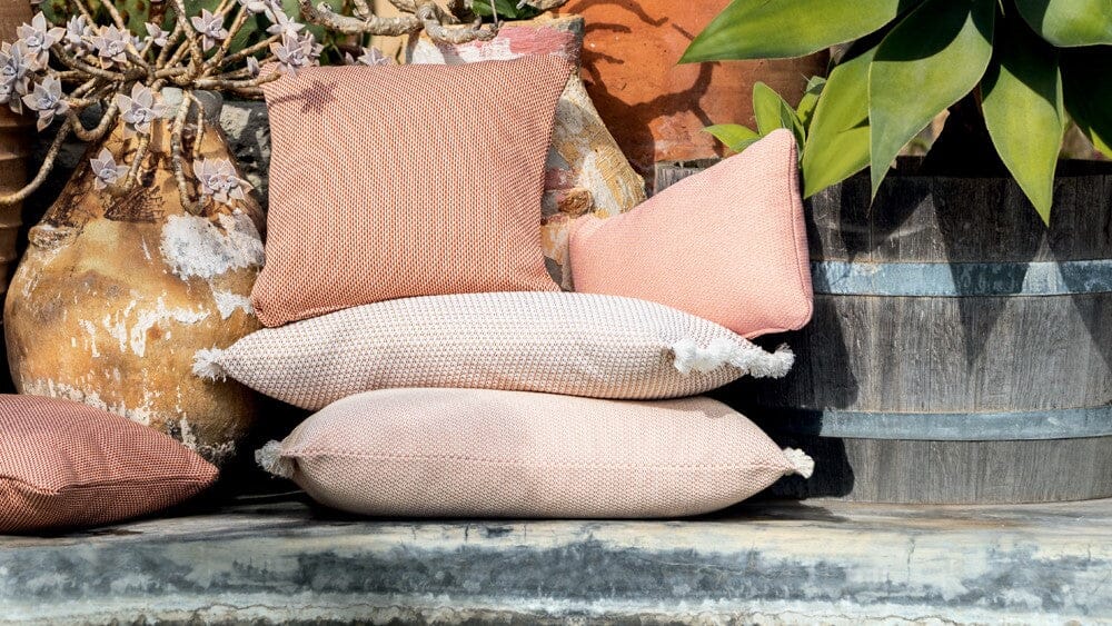 Reliefs, subtile Texturspiele – die Evasion-Kollektion ist eine imaginäre Reise in das Herz taktiler und beruhigender Materialien, das Erbe ferner Länder. Die Oberflächen sind reichhaltig, optisch und die Farben leuchtend: eine lebendige und warme Atmosphäre. Mit Kupferakzenten verstärkte Rosatöne harmonieren mit einem hellen Weiß für eine poetische und grafische Farbpalette. Eine 100 % Outdoor-Kollektion voller Sonnenschein und Eleganz. Diese Kollektion im Zeichen der Flucht verwischt die Grenzen zwischen Innen und Außen. Inspiriert von der Nomadenwelt, Reisen und Begegnungen nehmen uns diese funkelnden Kreationen mit auf eine Reise voller Authentizität und Poesie.