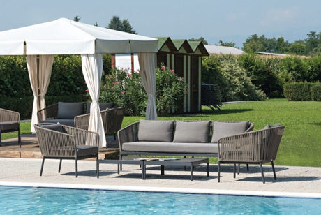 Arolla Loungesessel aus Edelstahl in Anthrazit mit laminierten Kissen