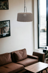 Allwetter-Lampenschirm aus geflochtenem Korbgeflecht.