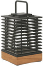 Tekura 500 Lumen Solar- und wiederaufladbare Laterne H37,5cm aus Teakholz und schieferfarbenem HPL. Diese Laternen ähneln den japanischen Tempeln, aus denen sie ihre Inspiration beziehen. Sie erzeugen ein warmes Licht, das sehr schöne Reflexionen auf den Boden wirft. Sie werden auf einer Terrasse oder in einer Einfahrt den größten Effekt erzielen. Sie ist mit einem der leistungsstärksten und zuverlässigsten USB-Solarmodule (500 Lumen) ausgestattet, das abnehmbar ist und ein hocheffizientes Solarmodul, einen Mikro-USB-Anschluss zum Aufladen am Stromnetz, einen Anwesenheitssensor (abschaltbar), zwei Lithiumbatterien und 10 LEDs der neuesten Generation vereint.