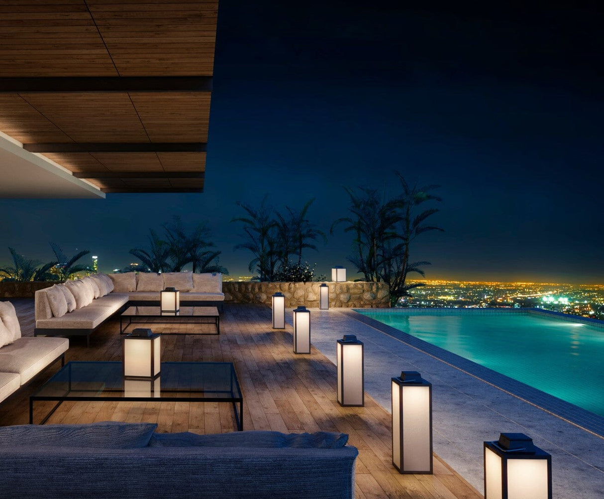 Solarlaterne 300 Lumen Tradition 40cm aus anthrazitfarbenem Aluminium und mattiertem Glas. Die leichte und dank ihres Griffs leicht zu transportierende Laterne kann aufgehängt oder auf den Boden gestellt werden, auf einer Terrasse, am Rand eines Schwimmbeckens, auf den Stufen einer Freitreppe, auf beiden Seiten eines Eingangs usw. Ihre vier Streuflächen aus mattem Acrylglas sorgen für eine sehr großzügige und vollkommen gleichmäßige Beleuchtung. Mit dem abnehmbaren 300-Lumen-Solarmodul, das ein hocheffizientes Solarmodul, einen Lithium-Akku und 5 LEDs der neuesten Generation kombiniert, verbreitet sie ein warmes, starkes Licht mit einstellbarer Intensität von bis zu 300 Lumen für 4 bis 150 Stunden - sie lässt sich mit Solarenergie und Tageslicht aufladen.