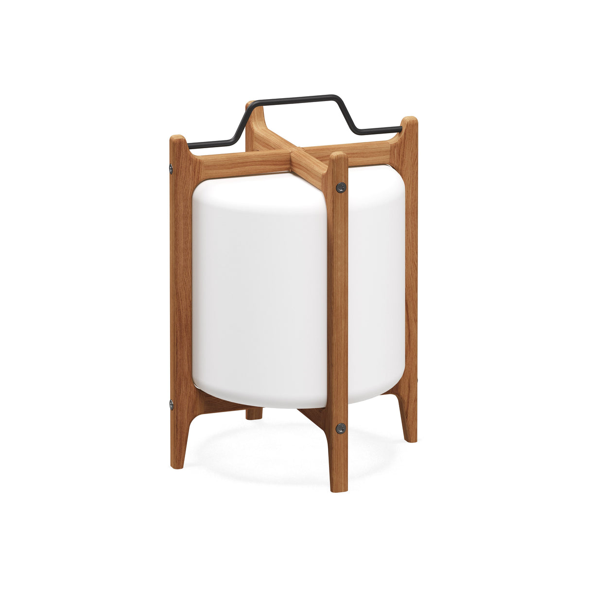 Rahmen aus naturbelassenem Teakholz mit Schale aus Polypropylen. Tragegriff aus pulverbeschichtetem Meteor-Edelstahl. Nur Netzladung. Ladegerät im Lieferumfang enthalten.