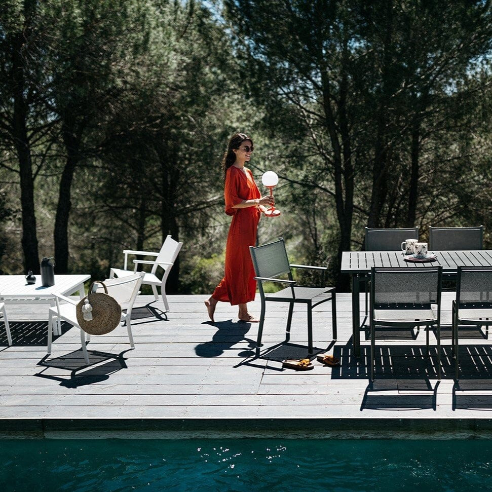 Das Tischleuchte , besteht aus einer Aluminiumstruktur und einem Polyethylendiffusor. An Funktionen mangelt es nicht, denn es bietet 2 Lichttemperaturen, Kaltweiß (6000°K) und Warmweiß (4000°K), eine Dim-Up- und Dim-Down-Funktion zum stufenweisen Ein- und Ausschalten. Mit starken Inspirationen ist es in mehreren Farben aus der Fermob-Farbkarte erhältlich.