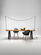 Gestell aus schwarz oder weiß pulverbeschichtetem Aluminium mit einer Tischplatte aus Teakholz nein