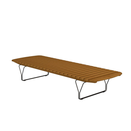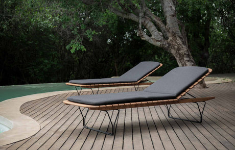 Der Liegestuhl MOLO besteht aus Bambusstreifen mit einer dekorativen, schwarz pulverbeschichteten Metallstruktur. Die Oberfläche und die weichen, abgerundeten Bambuslatten in Kombination mit der Metallstruktur erinnern an einen Pier und eine entspannte Atmosphäre am Meer.