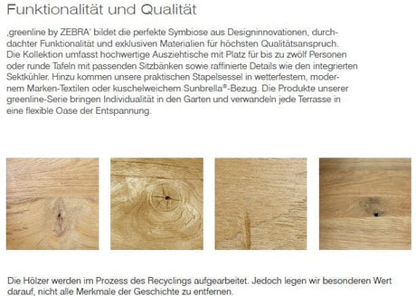 Rundes recyceltes Teakholz für die großzügige Terrasse.