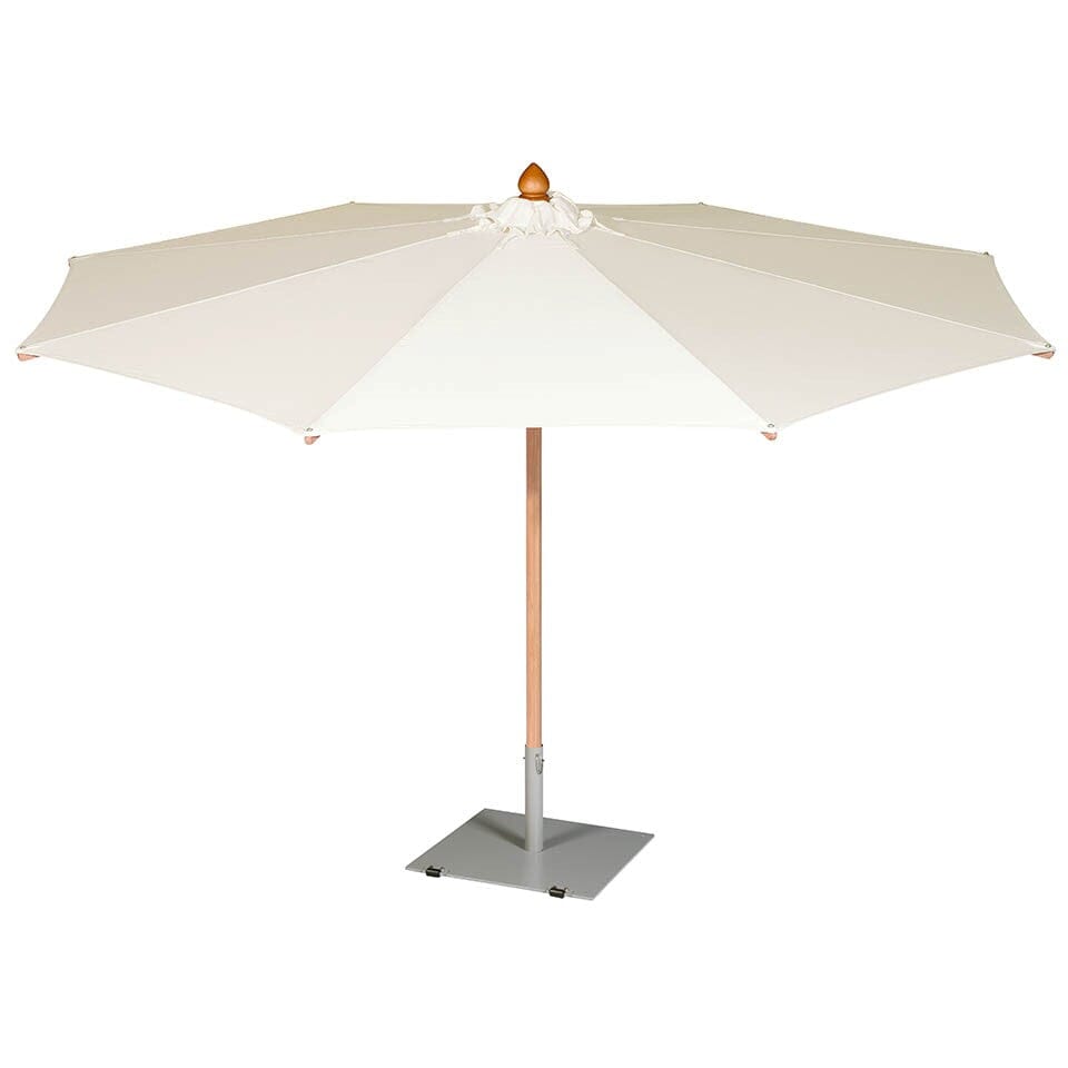 NAPOLI Kollektion. Dieser große Sonnenschirm hat eine Teleskopwirkung, die es ihm ermöglicht, sich im geschlossenen Zustand über unsere Esstische mit Standardhöhe zu senken. Die Napoli wird aus Eukalyptusholz und hochwertigsten vernickelten Messingbeschlägen gefertigt. Alle unsere Sonnenschirme werden komplett mit einer Hülle für die Aufbewahrung über Nacht geliefert. Für diesen Sonnenschirm sind freistehende Basen und Bodenbefestigungen erhältlichnicht inbegriffen).