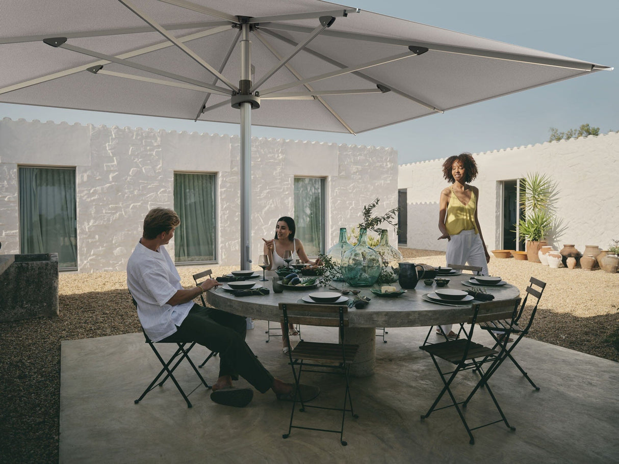 GLATZ ist für seine Ideen bekannt. Das patentierte Gegenöffnungsprinzip sorgt für eine einfache und schnelle Handhabung. Es ist windstabil und in 16 Standardausführungen mit zahlreichen Optionen oder als individuell gestaltbare Version erhältlich. Hochwertige Materialien, beste Verarbeitung und ein elegantes Design. Das flache Schirmdach lässt sich im Handumdrehen öffnen und der Aluminiummast mit integriertem Standrohr bietet sicheren Schutz unter dem PALAZZONoblesse. Echte Schweizer Qualität und zusätzliche Optionen wie Heizung oder Beleuchtung erklären, warum er überall dort zu finden ist, wo das Leben auf großen Terrassen pulsiert.