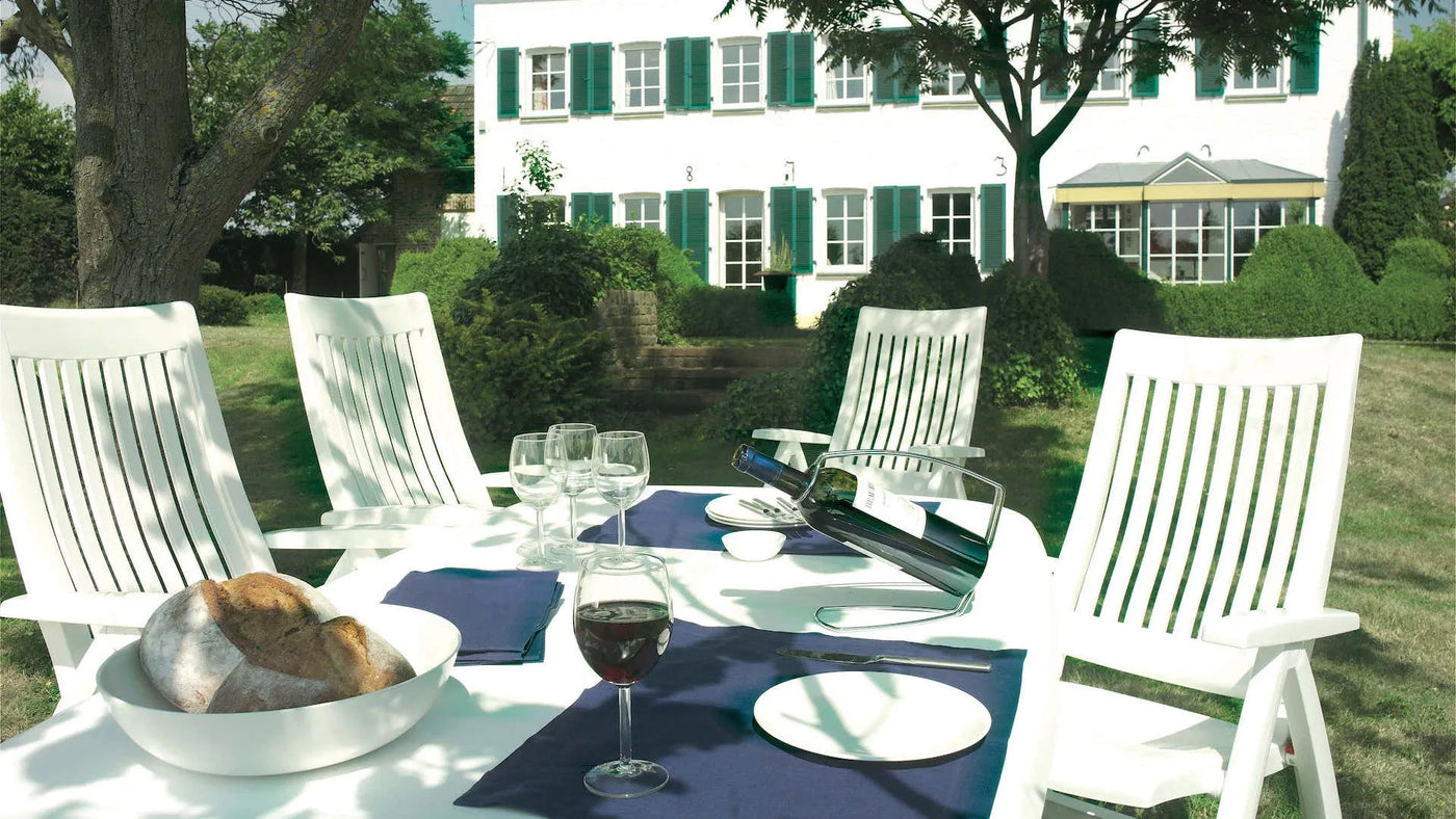 Der Klassiker ROMA von KETTLER setzt mit hellem Weiß frische Akzente. Die mehrfach verstellbaren Stühle bestehen aus hochwertigem Kunstharz und sind ebenso gut gestaltet – sie werden durch den kleinen Hocker praktisch ergänzt.