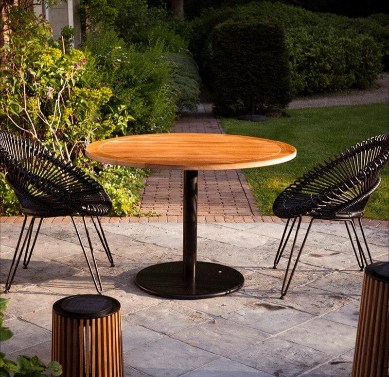 Ronda ist ein praktischer Bistrotisch, der eine geräumige runde Tischplatte bietet, ohne zu viel Platz einzunehmen.