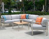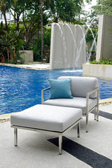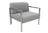 Arolla Lounge-Clubsessel aus gebürstetem Edelstahl mit wasserdichten Kissen aus laminiertem Stoff