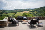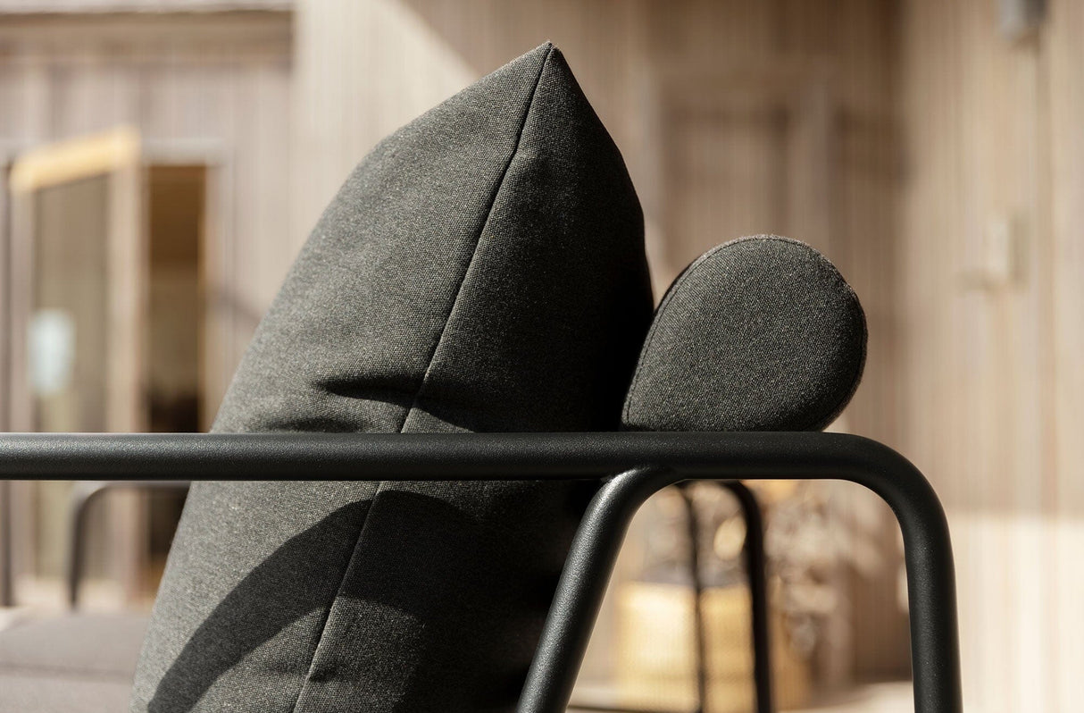 Das beste Beispiel hierfür sind der Rahmen und die Konstruktion der großen, weichen Rückenkissen: Die Schlichtheit der Struktur, wobei die niedrigen Linien dafür sorgen, dass das Design stets dezent wirkt, mit oder ohne Kissen – Sommer wie Winter. Die Griffe an den Kissen zeugen von der Funktionalität des Produkts und ermöglichen ein einfaches Greifen und Verstauen bei Bedarf.