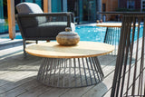 Solpuri Grid Couchtisch Ø 90 cm H: 45 cm – Anthrazitfarbenes Aluminium / Teakholzplatte.