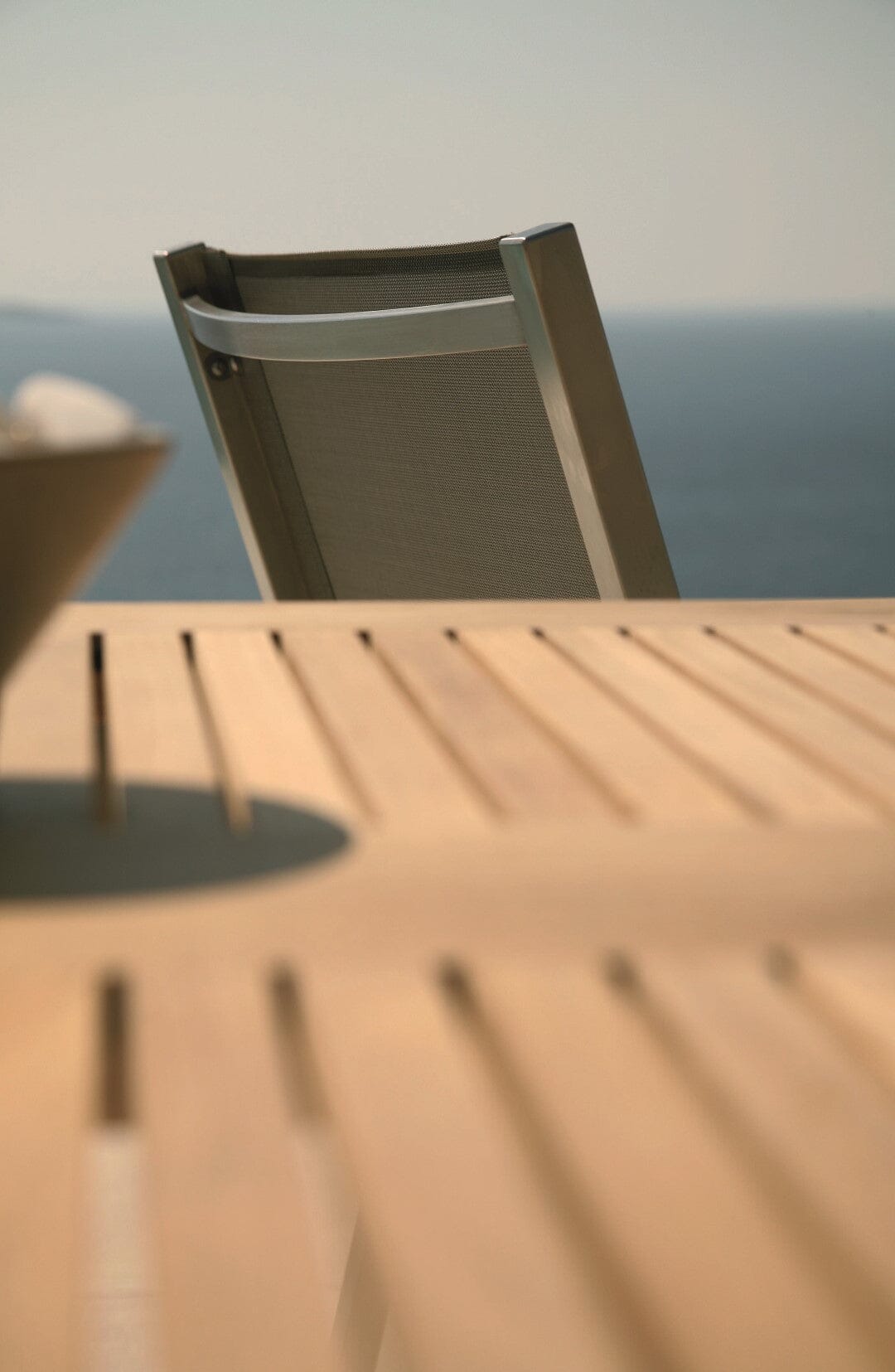 EQUINOX DINING-Kollektion. Eine riesige Auswahl an Esszimmerstühlen und -tischen. Die Equinox-Reihe besteht aus Edelstahl 316 in Marinequalität und ist eine perfekte Ergänzung für jeden modernen Wohnraum. Dieser Tisch verfügt über eine Teakholzplatte, die diesem modernen Design ein wärmeres, traditionelleres Aussehen verleiht.