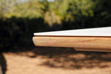 MONTEREY-Kollektion. Die Tischserie Monterey kombiniert einen geschnitzten Rahmen aus massivem Teakholz mit einer wunderschönen, hochgebrannten italienischen Keramikplatte, die sowohl schön als auch leicht zu reinigen ist.