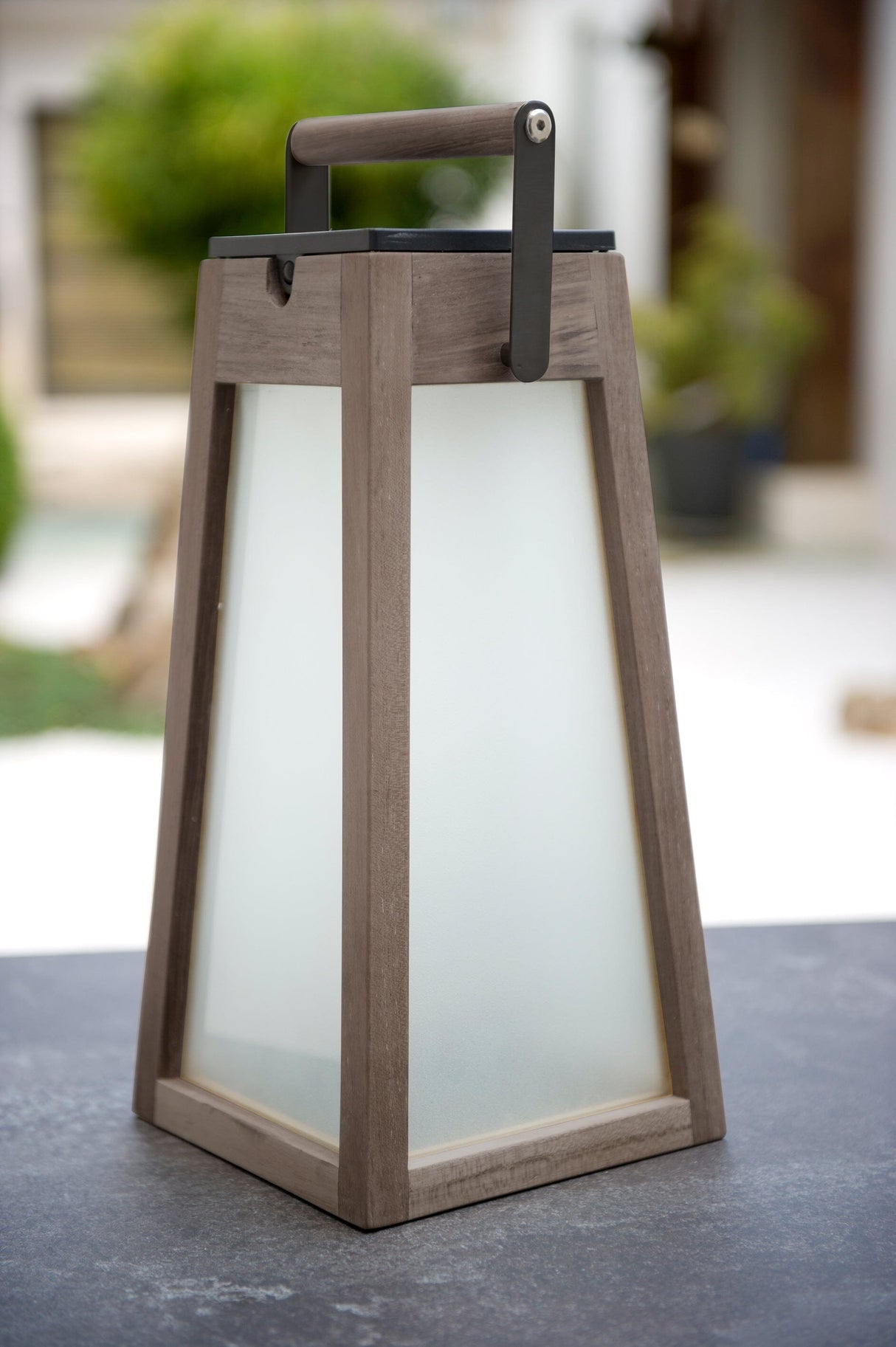 Tecka Solar- und wiederaufladbare Laterne 500 Lumen aus Teakholz und Milchglas. Dank ihres Griffs ist sie leicht zu transportieren. Sie kann auf den Boden oder einen Tisch gestellt oder unter einem Baum oder in einer Gartenlaube aufgehängt werden. Lassen Sie sie machen, sie sorgt für Licht im Garten, am Strand, im Urlaub oder zu Hause, für Ihr Abendessen oder Ihren Aperitif, Stimmungslicht oder starke Beleuchtung, Sie haben die Wahl.