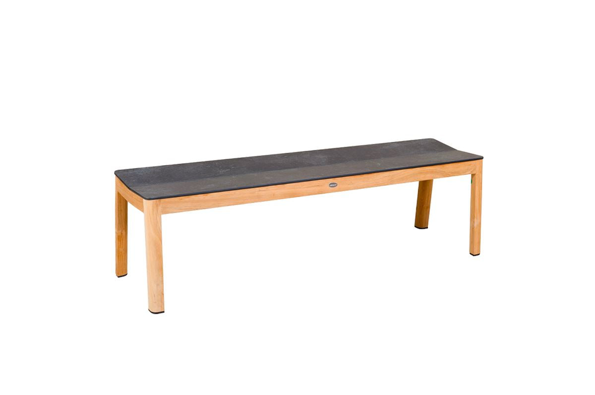 Tekura Bank aus Teakholz und schieferfarbenem HPL. Die Tekura Tischbank mit ihrer Sitzfläche aus breiten Latten passt problemlos unter einen Tisch und bietet Platz für mehrere Personen. Sie erfordert nur wenig Pflege...