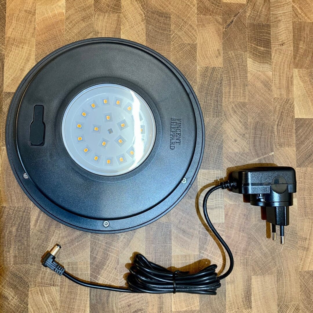 Akku-Lampe mit zwei Technologien (Hybrid): Solar und aufladbar über das mitgelieferte USB-Ladegerät.