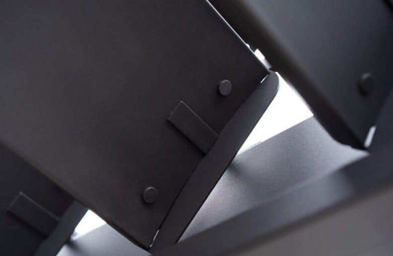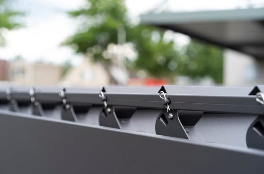 Dach aus Stahl und Aluminium, anthrazitschwarz lackiert.