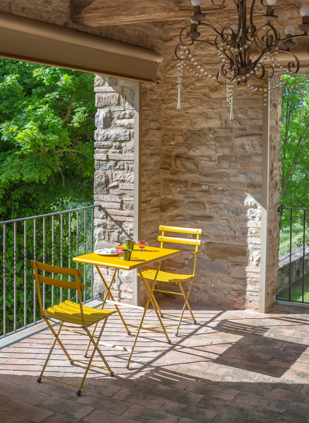 Arc-en-ciel -Kollektion. Ob der Balkon eines Hauses oder eine große grüne Wiese, Arc en Ciel bietet sehr farbenfrohe Ideen, um den Außenbereich zu genießen. Tische in verschiedenen Größen, Sitze ohne Armlehnen: Klapplösungen für informelle und lebendige Möbel. Die große Auswahl an verfügbaren Farben macht diese Kollektion reich an lebendigen und faszinierenden Lösungen, um allen Arten von Räumen Fröhlichkeit und Stil zu verleihen.