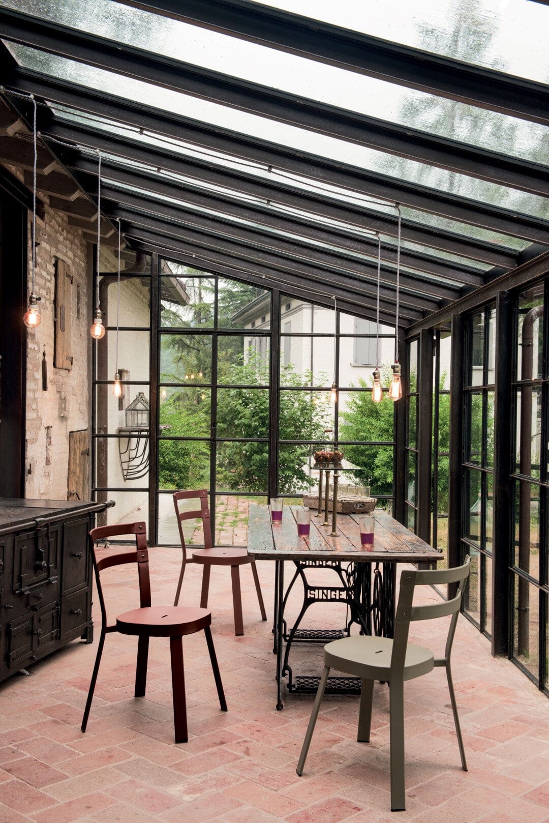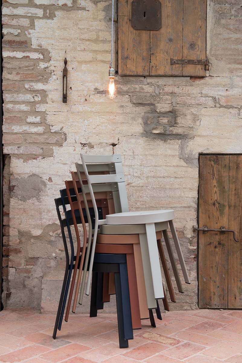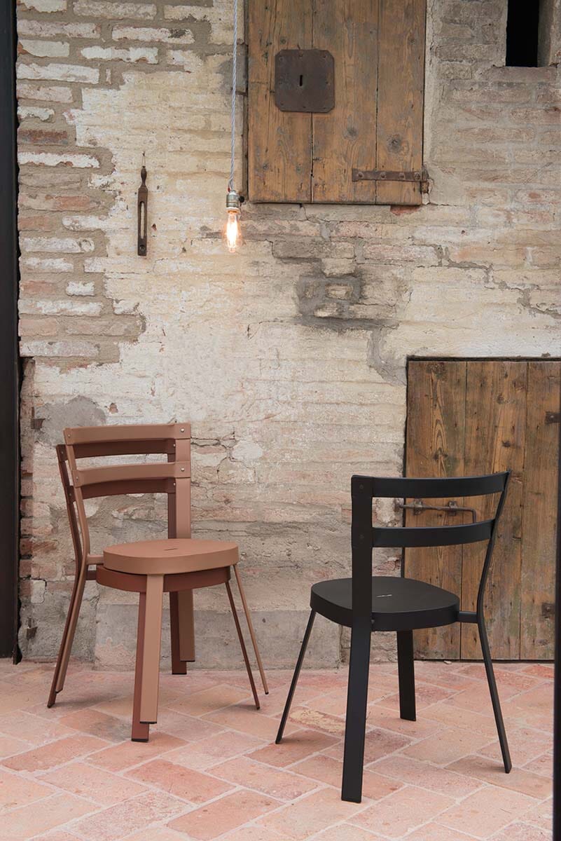 Thor. Die Thor ist von schmiedeeisernen Arbeiten inspiriert und weist charakteristische Linien auf, die durch eine ungewöhnliche Form der Verbindung der Elemente verschönert werden. Thor gibt es in zwei Modellen, Stuhl und Hocker, mit einem gepflegten Design und daher für Wohnbereiche geeignet.