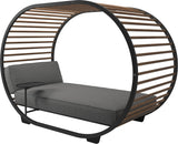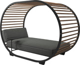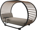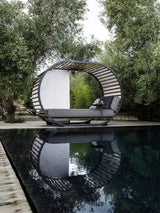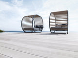 Kollektion von Gloster. Hier geht es darum, definierte Räume zu schaffen. Ihre eigene private Oase im Freien, aber immer offen und den Elementen ausgesetzt mit einem Gefühl von Gehege. Luxuriös für einen, aber groß genug für zwei, mit einer Auswahl an Schattierungen kann die Privatsphäre angepasst werden. Eine Vielzahl von Ausführungen und Stoffen sowie ein integrierter Couchtisch ermöglichen es Ihnen, Ihre eigene Oase zu schaffen.