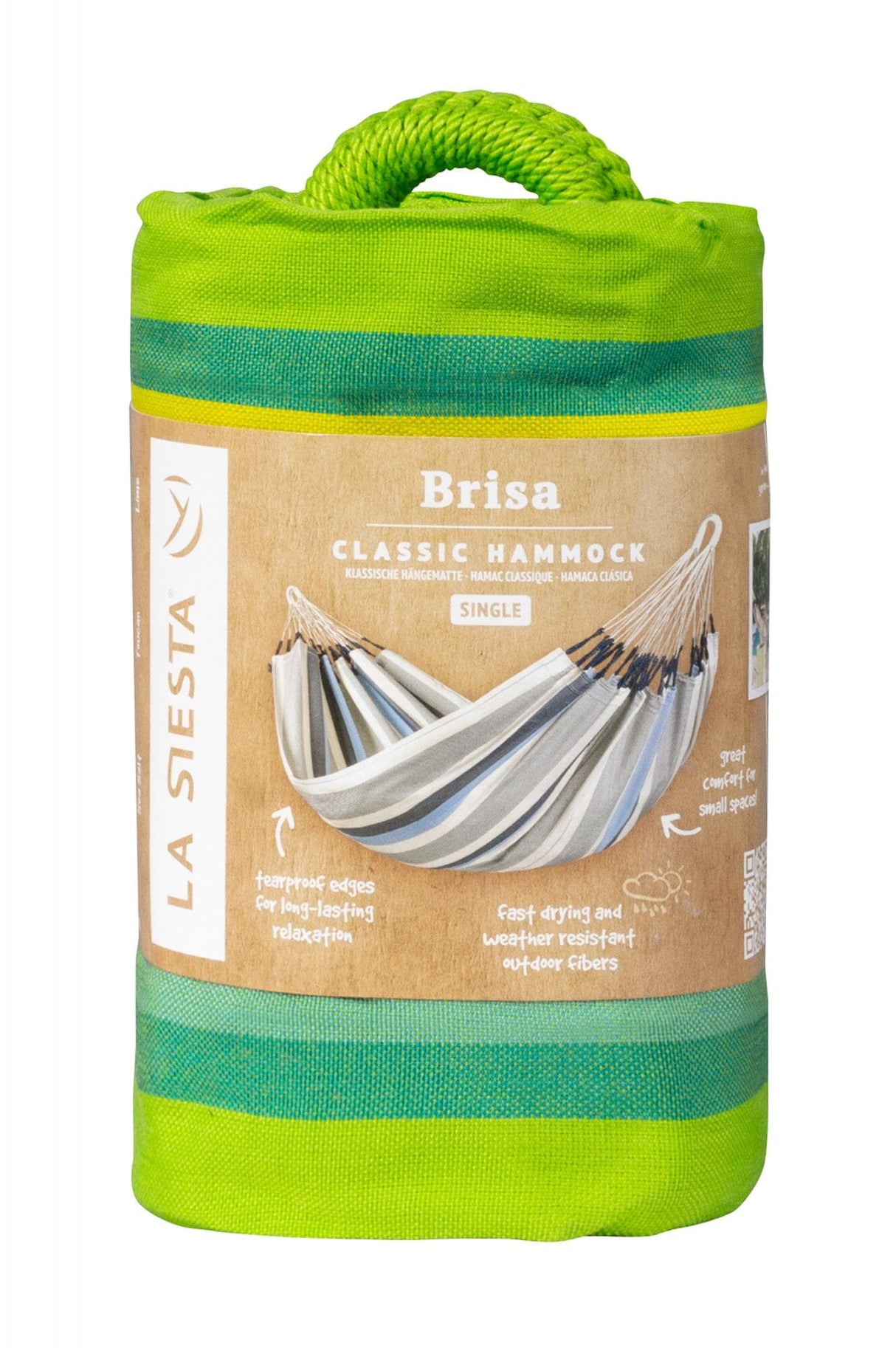 Das Modell Brisa bringt lateinamerikanische Lebensfreude nach Hause und ist mit seinen speziellen Funktionsfasern die ideale Hängematte für den Außenbereich.