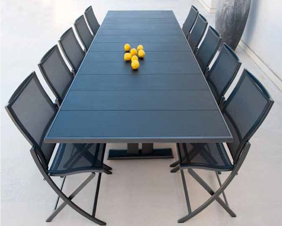 Sthul Koton aus Aluminium und meliertem Batyline Eden. Dank ihres Einhand-Klappsystems sind diese Stühle ultrapraktisch! Außerdem sorgt ihre geschwungene Sitzfläche für einen vorbildlichen Halt und Komfort. Sie stehen aufrecht, wenn sie zusammengeklappt sind.
