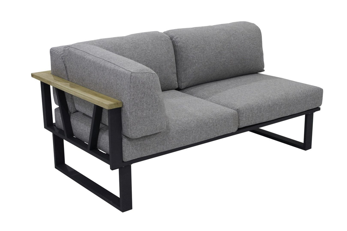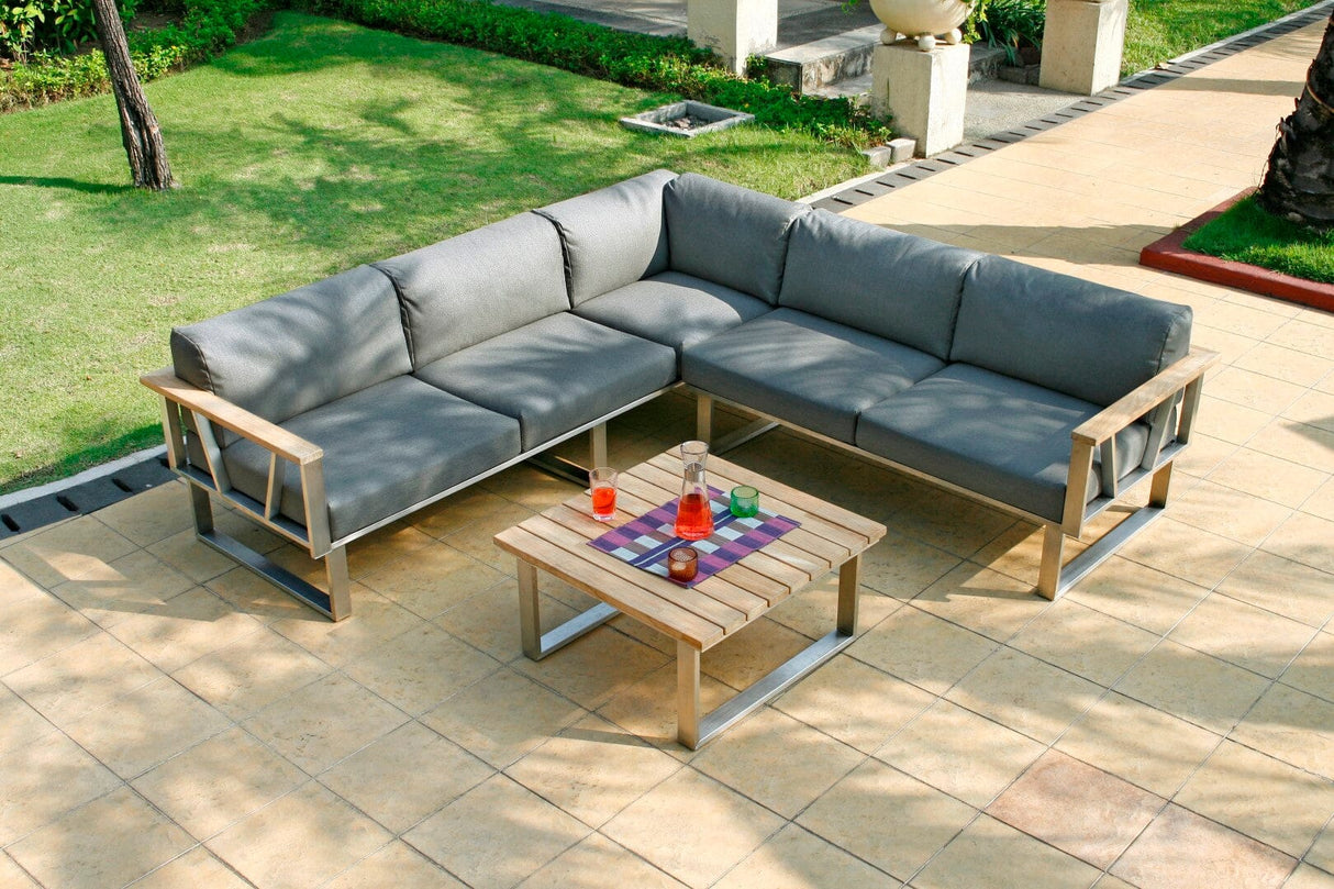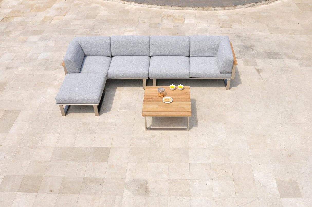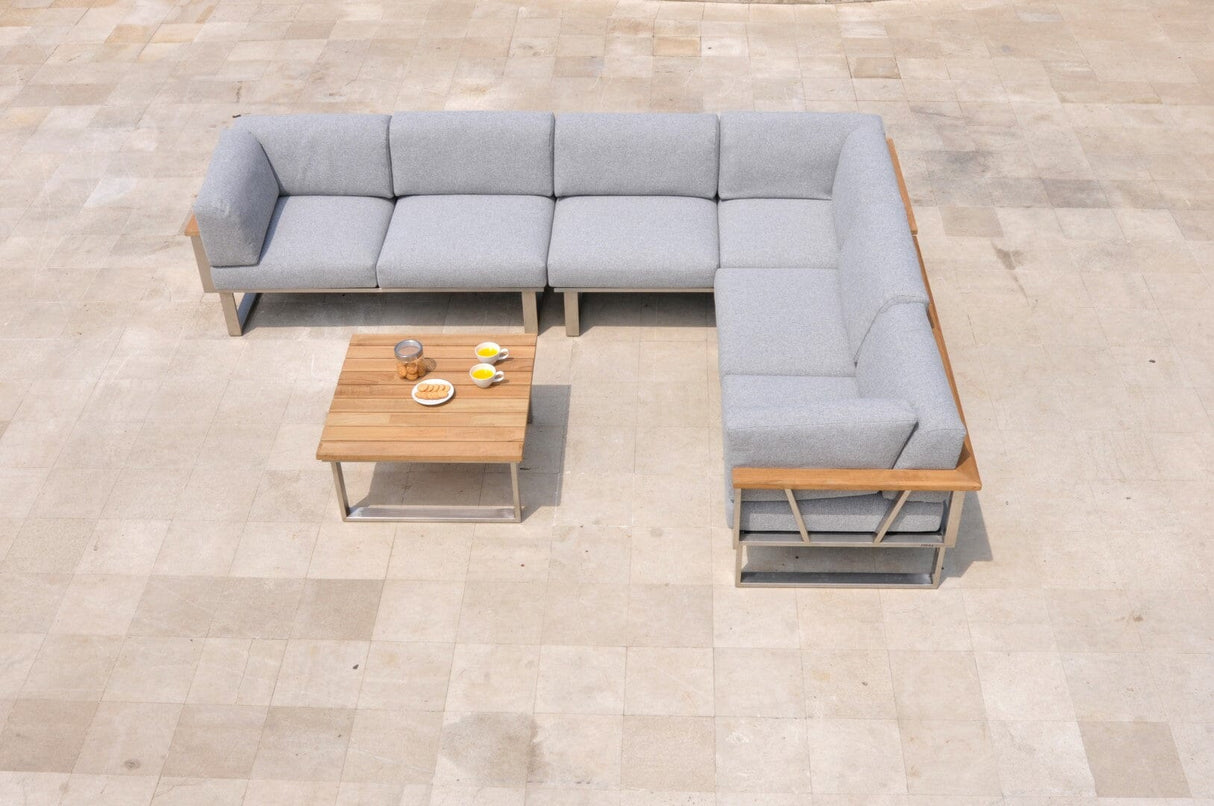 Material: Gestell aus Edelstahl/zertifiziertes recyceltes Teakholz/Sitz- und Rückenkissen in Olefingrau.